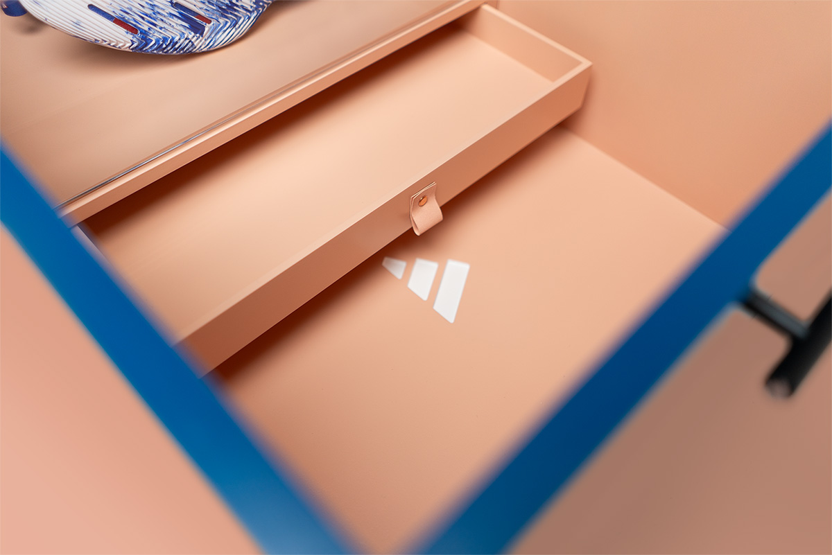 The trunk body was constructed from birch and included an internal drawer system to allow for staged reveals of apparel and accessories The exterior was finished in the program’s signature blue, while the interior was painted in a complementary peach tone pulled directly from the Anthony Edwards footwear line — creating a subtle but intentional brand connection.