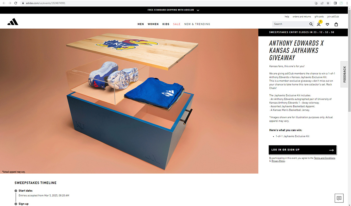 ● One featured as a high-visibility giveaway on the Adidas homepage