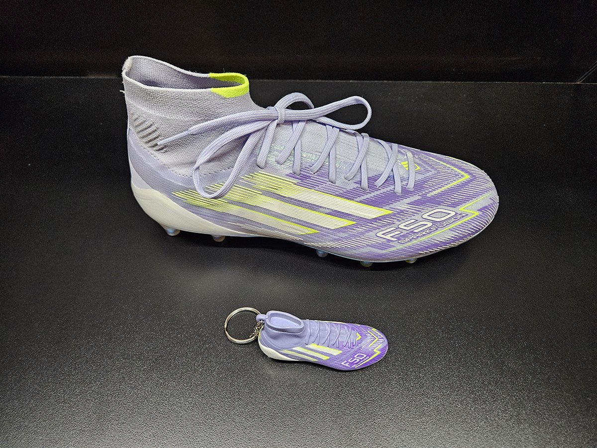 The challenge was timing. The total turnaround was just three weeks, while a project of this scope and quantity would typically require nearly two months of production time. Accuracy could not be sacrificed for speed; the replicas needed to match the cleat’s form, proportions, and visual details at a very small scale.