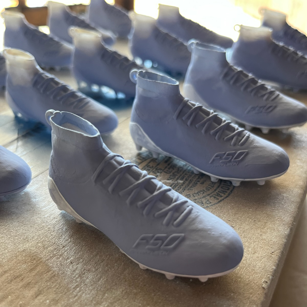 The challenge was timing. The total turnaround was just three weeks, while a project of this scope and quantity would typically require nearly two months of production time. Accuracy could not be sacrificed for speed; the replicas needed to match the cleat’s form, proportions, and visual details at a very small scale.